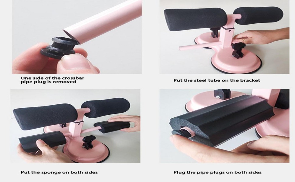 Easy installation and remove without any tools. Find a dry, clean and flat ground; put down the sit up bar; adjust the gear position and put down the handle. Ensure it wouldn't move easily before fitness please. (Add a little water can be easier to sucking it on the floor).